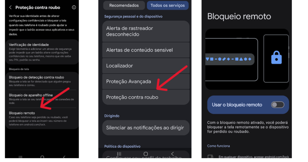 - Acesse “Bloqueio remoto” e desative a opção clicando no botão;